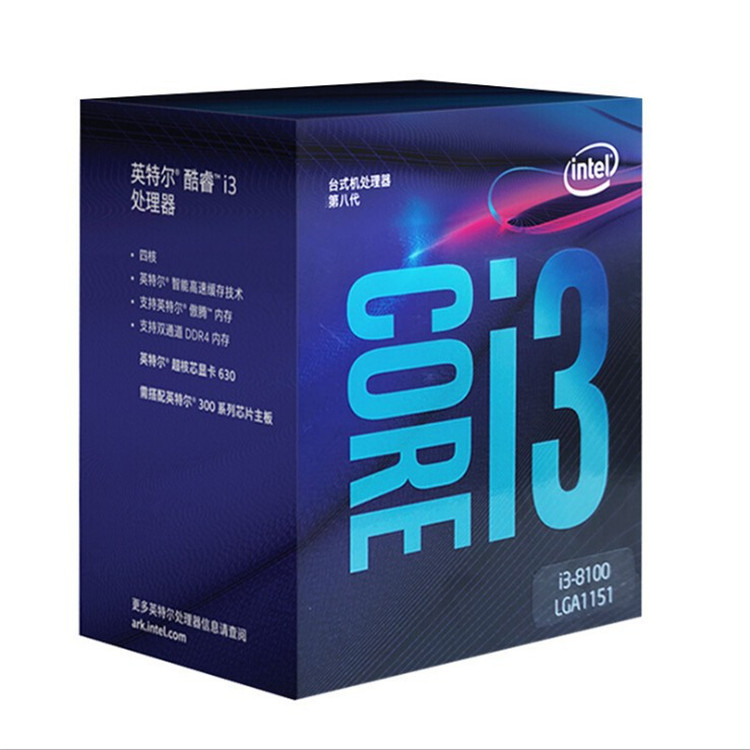 英特尔 i3-8100 酷睿 8代 CPU 台式机电脑盒装 处理器 8100 存储