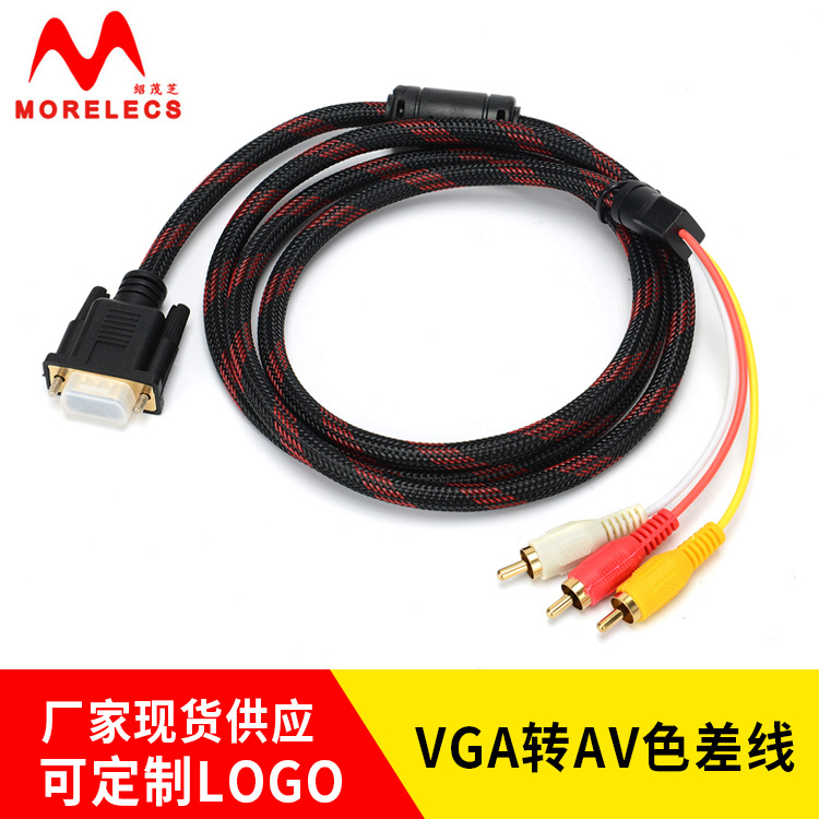 MORELECS VGA转AV色差线VGA对3RCA莲花头红白黄铜芯电视电脑转接线1.5M带网 存储